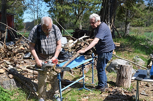 På bilderna ser vi Kalle NUE och Willie BSV klyva ved och Kalle NUE och Allan CBX såga.