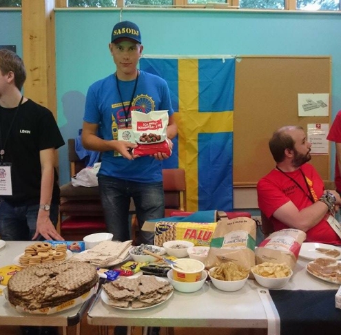 När vi kom tillbaka från London var det dags för den internationella kulturkvällen där alla bjuder på typiska rätter och drycker från respektives land. Många bjöd på goda ostar och korvar, andra bjöd på lokalbryggd öl, kakor och godis. Vi fick testa det mesta från japanska nudlar till ungerskt "vatten" där vi alla tre tillsammans knappt hade fingrar och tår så det räckte att räkna procenthalten. Alla var mycket stolta över vad de bjöd på. Vi hade med alla de svenska klassikerna förutom surströmmingen. Se bild.